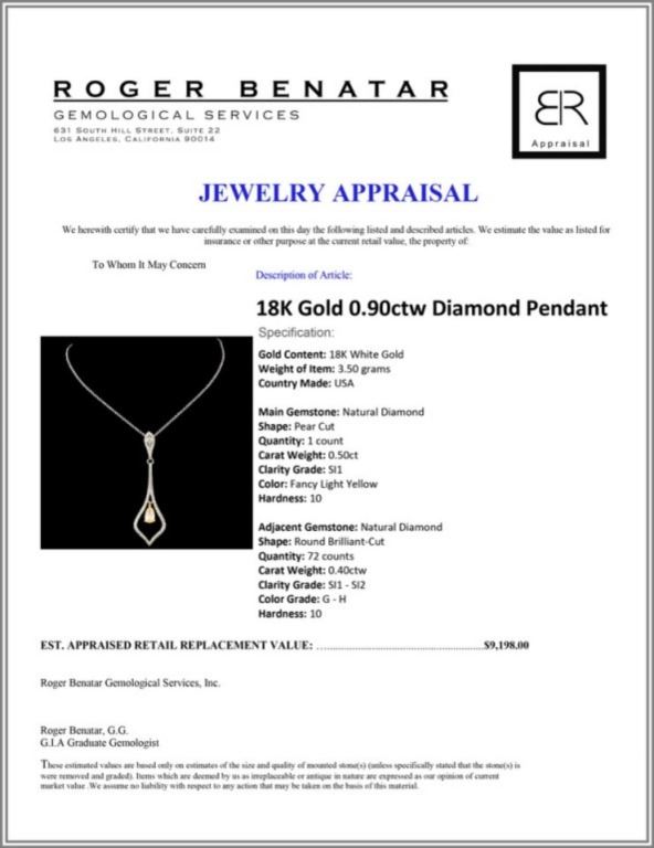 Regarding Appraised Jewelry and Loose Stones - Auctionfarm sends them out to a third party for Retail Replacement Value Appraisals, which are the most common. These types of evaluations are written for insurance needs. This would be the cost to replace the jewelry with an item of equal quality and kind, considered to be the current market price or the replacement value. This type of appraisal is done to protect you in the event of damage or loss of a valuable item. Our appraisals are conducted by independent 3rd Party appraisal firms that utilizes Certified GIA Gemologist. Appraisals should be used for verification of gemstone and/or metal weight, size, and grade only, not actual value. Appraisal value should be considered for insurance purposes only, not actual value, as price varies greatly from retail locations thru out the world. Items should not be purchased with the expectation to resell for appraisal price, or for profit.