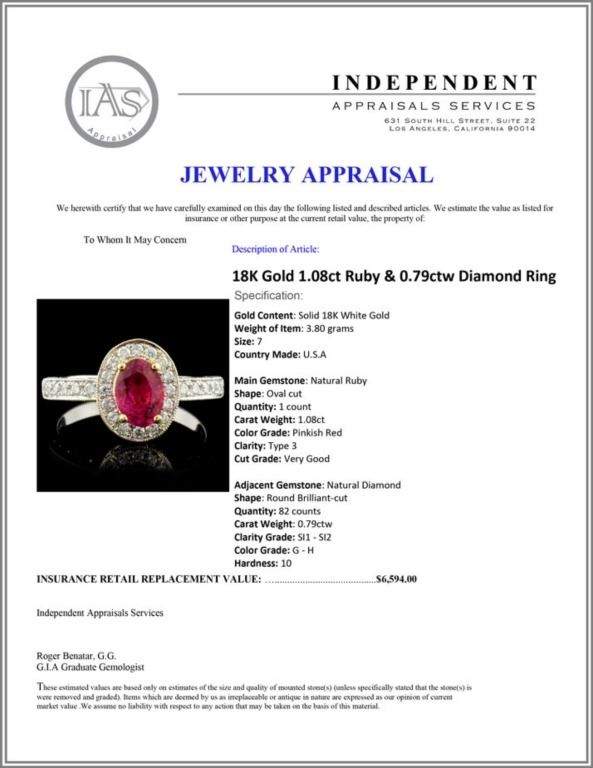 Regarding Appraised Jewelry and Loose Stones - Auctionfarm sends them out to a third party for Retail Replacement Value Appraisals, which are the most common. These types of evaluations are written for insurance needs. This would be the cost to replace the jewelry with an item of equal quality and kind, considered to be the current market price or the replacement value. This type of appraisal is done to protect you in the event of damage or loss of a valuable item. Our appraisals are conducted by independent 3rd Party appraisal firms that utilizes Certified GIA Gemologist. Appraisals should be used for verification of gemstone and/or metal weight, size, and grade only, not actual value. Appraisal value should be considered for insurance purposes only, not actual value, as price varies greatly from retail locations thru out the world. Items should not be purchased with the expectation to resell for appraisal price, or for profit.
