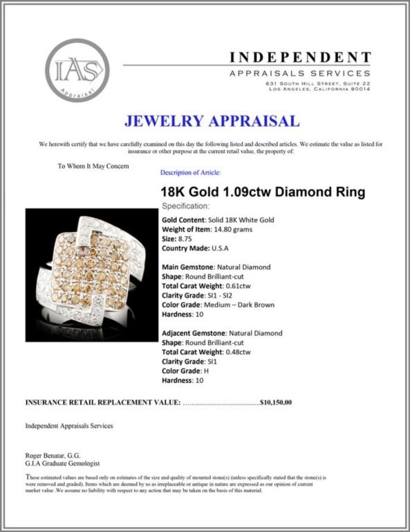 Regarding Appraised Jewelry and Loose Stones - Auctionfarm sends them out to a third party for Retail Replacement Value Appraisals, which are the most common. These types of evaluations are written for insurance needs. This would be the cost to replace the jewelry with an item of equal quality and kind, considered to be the current market price or the replacement value. This type of appraisal is done to protect you in the event of damage or loss of a valuable item. Our appraisals are conducted by independent 3rd Party appraisal firms that utilizes Certified GIA Gemologist. Appraisals should be used for verification of gemstone and/or metal weight, size, and grade only, not actual value. Appraisal value should be considered for insurance purposes only, not actual value, as price varies greatly from retail locations thru out the world. Items should not be purchased with the expectation to resell for appraisal price, or for profit.
