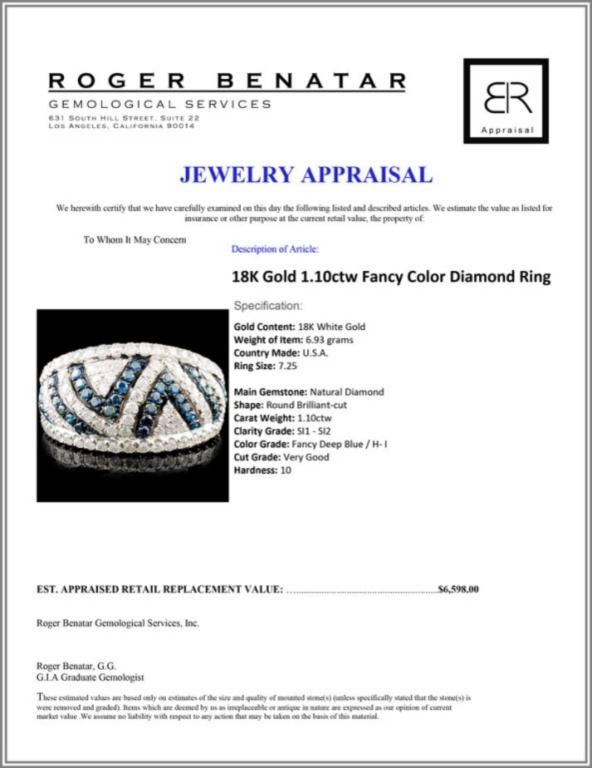 Regarding Appraised Jewelry and Loose Stones - Auctionfarm sends them out to a third party for Retail Replacement Value Appraisals, which are the most common. These types of evaluations are written for insurance needs. This would be the cost to replace the jewelry with an item of equal quality and kind, considered to be the current market price or the replacement value. This type of appraisal is done to protect you in the event of damage or loss of a valuable item. Our appraisals are conducted by independent 3rd Party appraisal firms that utilizes Certified GIA Gemologist. Appraisals should be used for verification of gemstone and/or metal weight, size, and grade only, not actual value. Appraisal value should be considered for insurance purposes only, not actual value, as price varies greatly from retail locations thru out the world. Items should not be purchased with the expectation to resell for appraisal price, or for profit.