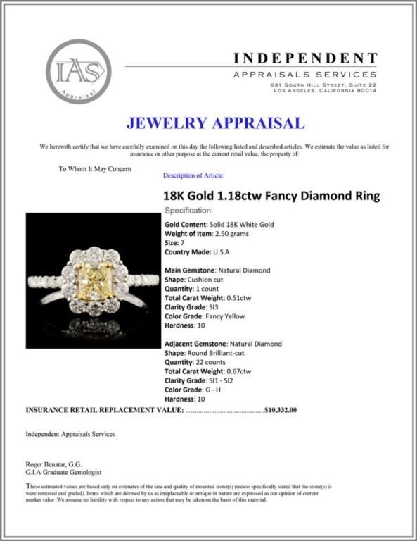 Regarding Appraised Jewelry and Loose Stones - Auctionfarm sends them out to a third party for Retail Replacement Value Appraisals, which are the most common. These types of evaluations are written for insurance needs. This would be the cost to replace the jewelry with an item of equal quality and kind, considered to be the current market price or the replacement value. This type of appraisal is done to protect you in the event of damage or loss of a valuable item. Our appraisals are conducted by independent 3rd Party appraisal firms that utilizes Certified GIA Gemologist. Appraisals should be used for verification of gemstone and/or metal weight, size, and grade only, not actual value. Appraisal value should be considered for insurance purposes only, not actual value, as price varies greatly from retail locations thru out the world. Items should not be purchased with the expectation to resell for appraisal price, or for profit.