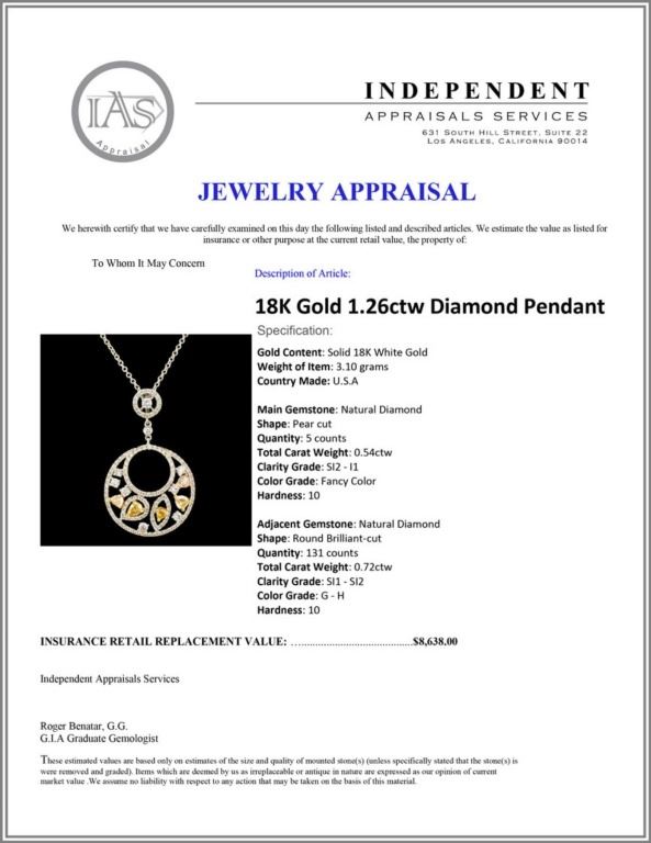 Regarding Appraised Jewelry and Loose Stones - Auctionfarm sends them out to a third party for Retail Replacement Value Appraisals, which are the most common. These types of evaluations are written for insurance needs. This would be the cost to replace the jewelry with an item of equal quality and kind, considered to be the current market price or the replacement value. This type of appraisal is done to protect you in the event of damage or loss of a valuable item. Our appraisals are conducted by independent 3rd Party appraisal firms that utilizes Certified GIA Gemologist. Appraisals should be used for verification of gemstone and/or metal weight, size, and grade only, not actual value. Appraisal value should be considered for insurance purposes only, not actual value, as price varies greatly from retail locations thru out the world. Items should not be purchased with the expectation to resell for appraisal price, or for profit.