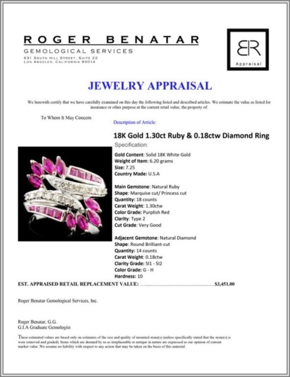 Regarding Appraised Jewelry and Loose Stones - Auctionfarm sends them out to a third party for Retail Replacement Value Appraisals, which are the most common. These types of evaluations are written for insurance needs. This would be the cost to replace the jewelry with an item of equal quality and kind, considered to be the current market price or the replacement value. This type of appraisal is done to protect you in the event of damage or loss of a valuable item. Our appraisals are conducted by independent 3rd Party appraisal firms that utilizes Certified GIA Gemologist. Appraisals should be used for verification of gemstone and/or metal weight, size, and grade only, not actual value. Appraisal value should be considered for insurance purposes only, not actual value, as price varies greatly from retail locations thru out the world. Items should not be purchased with the expectation to resell for appraisal price, or for profit.