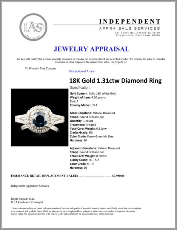 Regarding Appraised Jewelry and Loose Stones - Auctionfarm sends them out to a third party for Retail Replacement Value Appraisals, which are the most common. These types of evaluations are written for insurance needs. This would be the cost to replace the jewelry with an item of equal quality and kind, considered to be the current market price or the replacement value. This type of appraisal is done to protect you in the event of damage or loss of a valuable item. Our appraisals are conducted by independent 3rd Party appraisal firms that utilizes Certified GIA Gemologist. Appraisals should be used for verification of gemstone and/or metal weight, size, and grade only, not actual value. Appraisal value should be considered for insurance purposes only, not actual value, as price varies greatly from retail locations thru out the world. Items should not be purchased with the expectation to resell for appraisal price, or for profit.