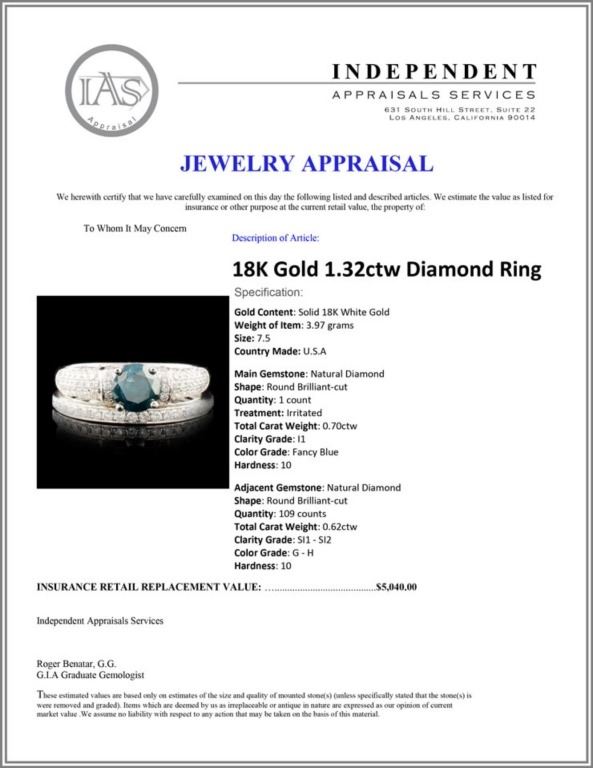Regarding Appraised Jewelry and Loose Stones - Auctionfarm sends them out to a third party for Retail Replacement Value Appraisals, which are the most common. These types of evaluations are written for insurance needs. This would be the cost to replace the jewelry with an item of equal quality and kind, considered to be the current market price or the replacement value. This type of appraisal is done to protect you in the event of damage or loss of a valuable item. Our appraisals are conducted by independent 3rd Party appraisal firms that utilizes Certified GIA Gemologist. Appraisals should be used for verification of gemstone and/or metal weight, size, and grade only, not actual value. Appraisal value should be considered for insurance purposes only, not actual value, as price varies greatly from retail locations thru out the world. Items should not be purchased with the expectation to resell for appraisal price, or for profit.