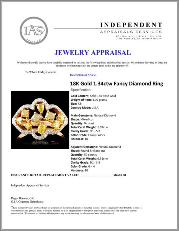 Regarding Appraised Jewelry and Loose Stones - Auctionfarm sends them out to a third party for Retail Replacement Value Appraisals, which are the most common. These types of evaluations are written for insurance needs. This would be the cost to replace the jewelry with an item of equal quality and kind, considered to be the current market price or the replacement value. This type of appraisal is done to protect you in the event of damage or loss of a valuable item. Our appraisals are conducted by independent 3rd Party appraisal firms that utilizes Certified GIA Gemologist. Appraisals should be used for verification of gemstone and/or metal weight, size, and grade only, not actual value. Appraisal value should be considered for insurance purposes only, not actual value, as price varies greatly from retail locations thru out the world. Items should not be purchased with the expectation to resell for appraisal price, or for profit.
