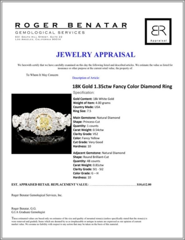 Regarding Appraised Jewelry and Loose Stones - Auctionfarm sends them out to a third party for Retail Replacement Value Appraisals, which are the most common. These types of evaluations are written for insurance needs. This would be the cost to replace the jewelry with an item of equal quality and kind, considered to be the current market price or the replacement value. This type of appraisal is done to protect you in the event of damage or loss of a valuable item. Our appraisals are conducted by independent 3rd Party appraisal firms that utilizes Certified GIA Gemologist. Appraisals should be used for verification of gemstone and/or metal weight, size, and grade only, not actual value. Appraisal value should be considered for insurance purposes only, not actual value, as price varies greatly from retail locations thru out the world. Items should not be purchased with the expectation to resell for appraisal price, or for profit.