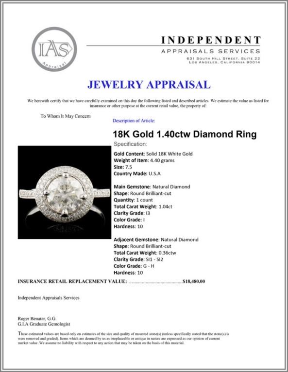 Regarding Appraised Jewelry and Loose Stones - Auctionfarm sends them out to a third party for Retail Replacement Value Appraisals, which are the most common. These types of evaluations are written for insurance needs. This would be the cost to replace the jewelry with an item of equal quality and kind, considered to be the current market price or the replacement value. This type of appraisal is done to protect you in the event of damage or loss of a valuable item. Our appraisals are conducted by independent 3rd Party appraisal firms that utilizes Certified GIA Gemologist. Appraisals should be used for verification of gemstone and/or metal weight, size, and grade only, not actual value. Appraisal value should be considered for insurance purposes only, not actual value, as price varies greatly from retail locations thru out the world. Items should not be purchased with the expectation to resell for appraisal price, or for profit.