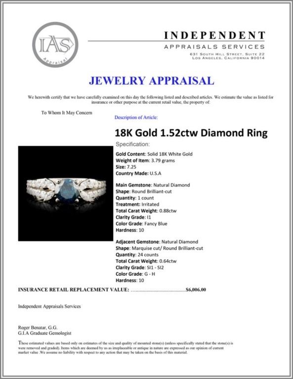 Regarding Appraised Jewelry and Loose Stones - Auctionfarm sends them out to a third party for Retail Replacement Value Appraisals, which are the most common. These types of evaluations are written for insurance needs. This would be the cost to replace the jewelry with an item of equal quality and kind, considered to be the current market price or the replacement value. This type of appraisal is done to protect you in the event of damage or loss of a valuable item. Our appraisals are conducted by independent 3rd Party appraisal firms that utilizes Certified GIA Gemologist. Appraisals should be used for verification of gemstone and/or metal weight, size, and grade only, not actual value. Appraisal value should be considered for insurance purposes only, not actual value, as price varies greatly from retail locations thru out the world. Items should not be purchased with the expectation to resell for appraisal price, or for profit.