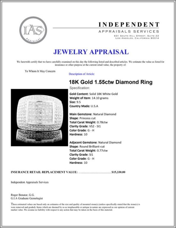 Regarding Appraised Jewelry and Loose Stones - Auctionfarm sends them out to a third party for Retail Replacement Value Appraisals, which are the most common. These types of evaluations are written for insurance needs. This would be the cost to replace the jewelry with an item of equal quality and kind, considered to be the current market price or the replacement value. This type of appraisal is done to protect you in the event of damage or loss of a valuable item. Our appraisals are conducted by independent 3rd Party appraisal firms that utilizes Certified GIA Gemologist. Appraisals should be used for verification of gemstone and/or metal weight, size, and grade only, not actual value. Appraisal value should be considered for insurance purposes only, not actual value, as price varies greatly from retail locations thru out the world. Items should not be purchased with the expectation to resell for appraisal price, or for profit.