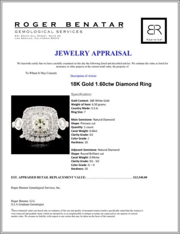 Regarding Appraised Jewelry and Loose Stones - Auctionfarm sends them out to a third party for Retail Replacement Value Appraisals, which are the most common. These types of evaluations are written for insurance needs. This would be the cost to replace the jewelry with an item of equal quality and kind, considered to be the current market price or the replacement value. This type of appraisal is done to protect you in the event of damage or loss of a valuable item. Our appraisals are conducted by independent 3rd Party appraisal firms that utilizes Certified GIA Gemologist. Appraisals should be used for verification of gemstone and/or metal weight, size, and grade only, not actual value. Appraisal value should be considered for insurance purposes only, not actual value, as price varies greatly from retail locations thru out the world. Items should not be purchased with the expectation to resell for appraisal price, or for profit.