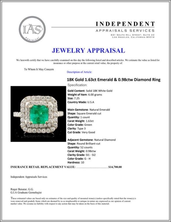 Regarding Appraised Jewelry and Loose Stones - Auctionfarm sends them out to a third party for Retail Replacement Value Appraisals, which are the most common. These types of evaluations are written for insurance needs. This would be the cost to replace the jewelry with an item of equal quality and kind, considered to be the current market price or the replacement value. This type of appraisal is done to protect you in the event of damage or loss of a valuable item. Our appraisals are conducted by independent 3rd Party appraisal firms that utilizes Certified GIA Gemologist. Appraisals should be used for verification of gemstone and/or metal weight, size, and grade only, not actual value. Appraisal value should be considered for insurance purposes only, not actual value, as price varies greatly from retail locations thru out the world. Items should not be purchased with the expectation to resell for appraisal price, or for profit.