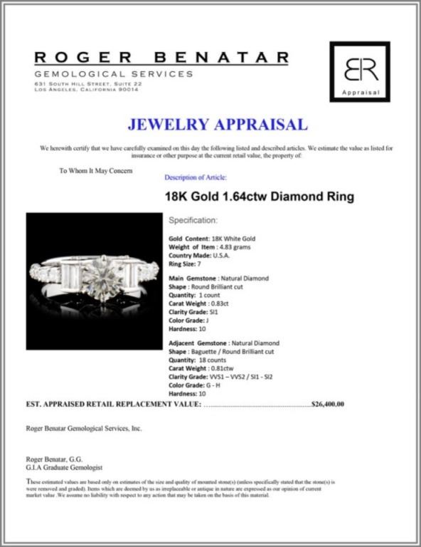 Regarding Appraised Jewelry and Loose Stones - Auctionfarm sends them out to a third party for Retail Replacement Value Appraisals, which are the most common. These types of evaluations are written for insurance needs. This would be the cost to replace the jewelry with an item of equal quality and kind, considered to be the current market price or the replacement value. This type of appraisal is done to protect you in the event of damage or loss of a valuable item. Our appraisals are conducted by independent 3rd Party appraisal firms that utilizes Certified GIA Gemologist. Appraisals should be used for verification of gemstone and/or metal weight, size, and grade only, not actual value. Appraisal value should be considered for insurance purposes only, not actual value, as price varies greatly from retail locations thru out the world. Items should not be purchased with the expectation to resell for appraisal price, or for profit.