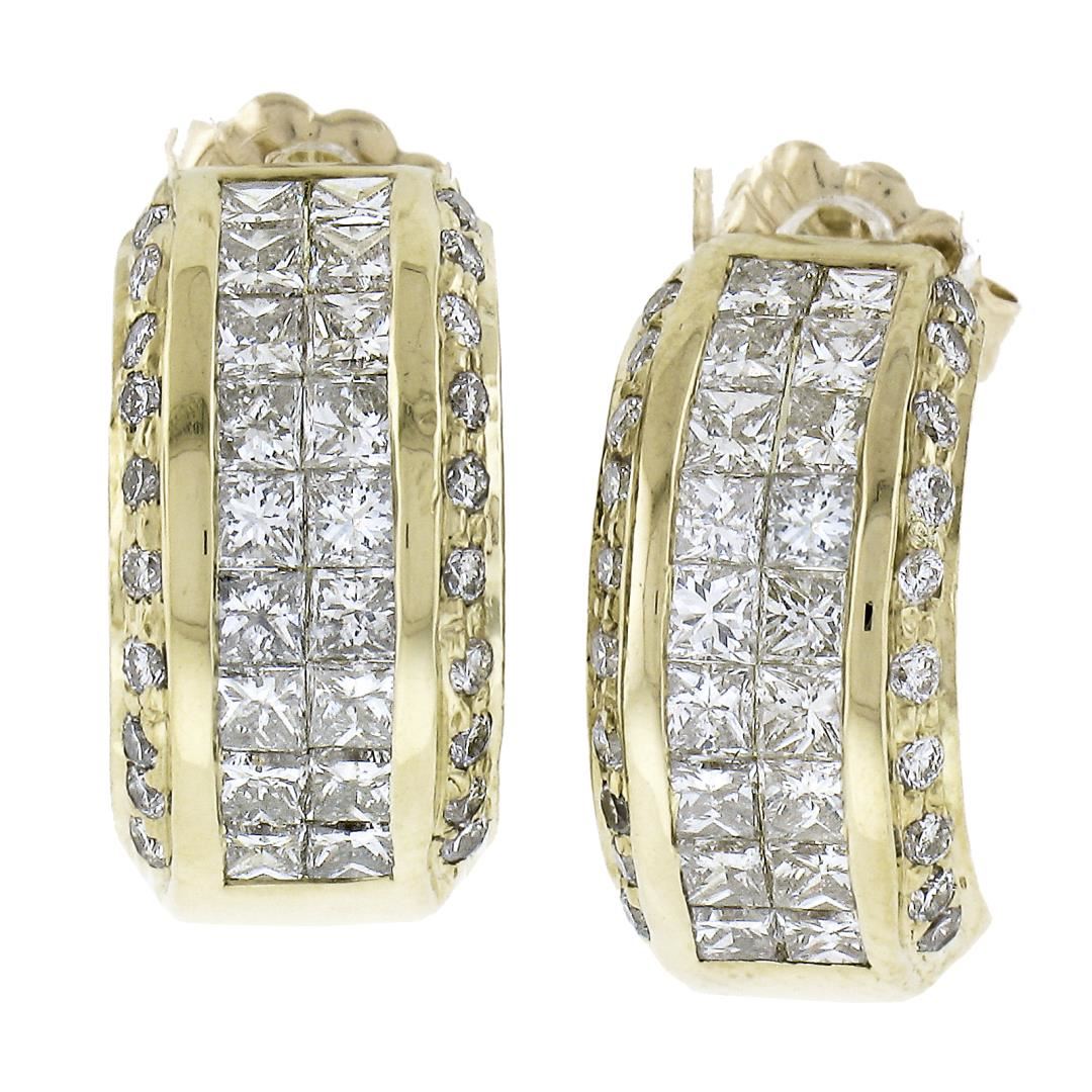 A solid 18k yellow gold cuff earrings, with 36 princess cut natural diamonds (H/I- VS2-SI2 ; 1.25ctw), and 40 round cut natural diamonds (H/I  - VS2/SI1 ; 0.40ctw). The earrings measure approximately 16.3x7.7mm and weigh a total of 6.30 grams.