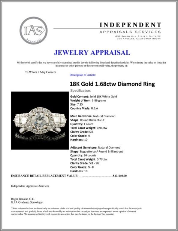 Regarding Appraised Jewelry and Loose Stones - Auctionfarm sends them out to a third party for Retail Replacement Value Appraisals, which are the most common. These types of evaluations are written for insurance needs. This would be the cost to replace the jewelry with an item of equal quality and kind, considered to be the current market price or the replacement value. This type of appraisal is done to protect you in the event of damage or loss of a valuable item. Our appraisals are conducted by independent 3rd Party appraisal firms that utilizes Certified GIA Gemologist. Appraisals should be used for verification of gemstone and/or metal weight, size, and grade only, not actual value. Appraisal value should be considered for insurance purposes only, not actual value, as price varies greatly from retail locations thru out the world. Items should not be purchased with the expectation to resell for appraisal price, or for profit.