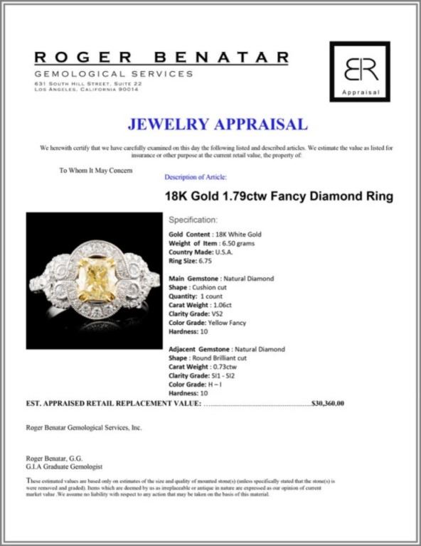 Regarding Appraised Jewelry and Loose Stones - Auctionfarm sends them out to a third party for Retail Replacement Value Appraisals, which are the most common. These types of evaluations are written for insurance needs. This would be the cost to replace the jewelry with an item of equal quality and kind, considered to be the current market price or the replacement value. This type of appraisal is done to protect you in the event of damage or loss of a valuable item. Our appraisals are conducted by independent 3rd Party appraisal firms that utilizes Certified GIA Gemologist. Appraisals should be used for verification of gemstone and/or metal weight, size, and grade only, not actual value. Appraisal value should be considered for insurance purposes only, not actual value, as price varies greatly from retail locations thru out the world. Items should not be purchased with the expectation to resell for appraisal price, or for profit.