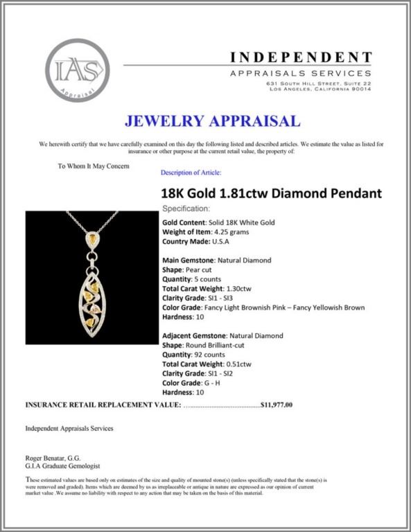 Regarding Appraised Jewelry and Loose Stones - Auctionfarm sends them out to a third party for Retail Replacement Value Appraisals, which are the most common. These types of evaluations are written for insurance needs. This would be the cost to replace the jewelry with an item of equal quality and kind, considered to be the current market price or the replacement value. This type of appraisal is done to protect you in the event of damage or loss of a valuable item. Our appraisals are conducted by independent 3rd Party appraisal firms that utilizes Certified GIA Gemologist. Appraisals should be used for verification of gemstone and/or metal weight, size, and grade only, not actual value. Appraisal value should be considered for insurance purposes only, not actual value, as price varies greatly from retail locations thru out the world. Items should not be purchased with the expectation to resell for appraisal price, or for profit.