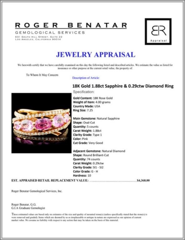 Regarding Appraised Jewelry and Loose Stones - Auctionfarm sends them out to a third party for Retail Replacement Value Appraisals, which are the most common. These types of evaluations are written for insurance needs. This would be the cost to replace the jewelry with an item of equal quality and kind, considered to be the current market price or the replacement value. This type of appraisal is done to protect you in the event of damage or loss of a valuable item. Our appraisals are conducted by independent 3rd Party appraisal firms that utilizes Certified GIA Gemologist. Appraisals should be used for verification of gemstone and/or metal weight, size, and grade only, not actual value. Appraisal value should be considered for insurance purposes only, not actual value, as price varies greatly from retail locations thru out the world. Items should not be purchased with the expectation to resell for appraisal price, or for profit.