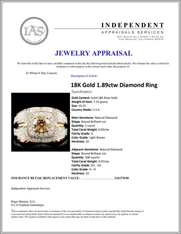 Regarding Appraised Jewelry and Loose Stones - Auctionfarm sends them out to a third party for Retail Replacement Value Appraisals, which are the most common. These types of evaluations are written for insurance needs. This would be the cost to replace the jewelry with an item of equal quality and kind, considered to be the current market price or the replacement value. This type of appraisal is done to protect you in the event of damage or loss of a valuable item. Our appraisals are conducted by independent 3rd Party appraisal firms that utilizes Certified GIA Gemologist. Appraisals should be used for verification of gemstone and/or metal weight, size, and grade only, not actual value. Appraisal value should be considered for insurance purposes only, not actual value, as price varies greatly from retail locations thru out the world. Items should not be purchased with the expectation to resell for appraisal price, or for profit.