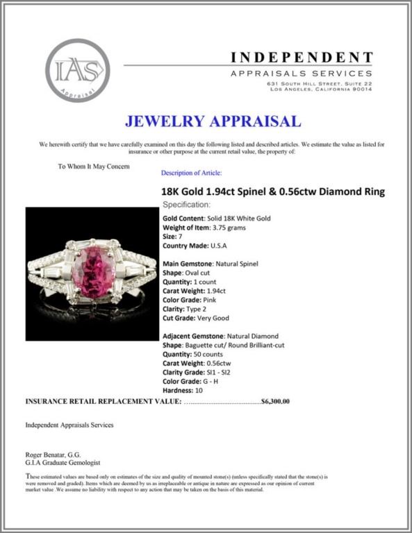 Regarding Appraised Jewelry and Loose Stones - Auctionfarm sends them out to a third party for Retail Replacement Value Appraisals, which are the most common. These types of evaluations are written for insurance needs. This would be the cost to replace the jewelry with an item of equal quality and kind, considered to be the current market price or the replacement value. This type of appraisal is done to protect you in the event of damage or loss of a valuable item. Our appraisals are conducted by independent 3rd Party appraisal firms that utilizes Certified GIA Gemologist. Appraisals should be used for verification of gemstone and/or metal weight, size, and grade only, not actual value. Appraisal value should be considered for insurance purposes only, not actual value, as price varies greatly from retail locations thru out the world. Items should not be purchased with the expectation to resell for appraisal price, or for profit.