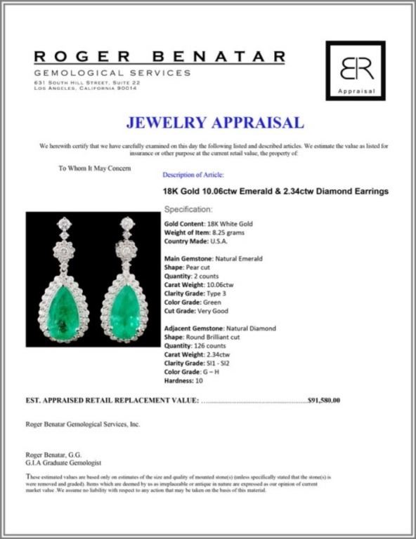 Regarding Appraised Jewelry and Loose Stones - Auctionfarm sends them out to a third party for Retail Replacement Value Appraisals, which are the most common. These types of evaluations are written for insurance needs. This would be the cost to replace the jewelry with an item of equal quality and kind, considered to be the current market price or the replacement value. This type of appraisal is done to protect you in the event of damage or loss of a valuable item. Our appraisals are conducted by independent 3rd Party appraisal firms that utilizes Certified GIA Gemologist. Appraisals should be used for verification of gemstone and/or metal weight, size, and grade only, not actual value. Appraisal value should be considered for insurance purposes only, not actual value, as price varies greatly from retail locations thru out the world. Items should not be purchased with the expectation to resell for appraisal price, or for profit.