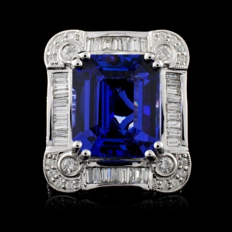 Estimated Retail Replacement Value: $59,400.00Ref: WAG23760Item no.: FA2053273007-BR6331ATZGold Content: 18K White GoldWeight of Item: 10.70 gramsSize: 7Main Gemstone: Natural TanzaniteShape: Emerald cutQuantity: 1 countCarat Weight: 10.71ctColor Grade: Violetish BlueAdjacent Gemstone: Natural DiamondShape: Round Brilliant-cut/ Baguette cutCarat Weight: 1.70ctwClarity Grade: SI1 - SI2Color Grade: G - HHardness: 10 Great Condition - Shipping notes: We ship 4-10 Business day after the clearance of payment. Tracking numbers are emailed once the package(s) are shipped. Most shipments are sent by FEDEX Priority, UPS Priority, or US PRIORITY MAIL INSURED
