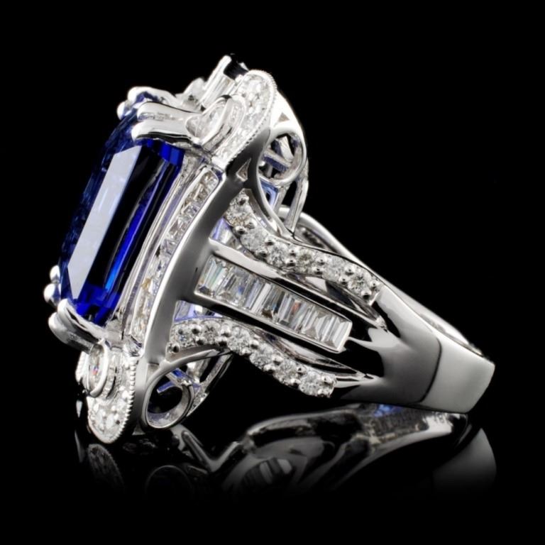 Estimated Retail Replacement Value: $59,400.00Ref: WAG23760Item no.: FA2053273007-BR6331ATZGold Content: 18K White GoldWeight of Item: 10.70 gramsSize: 7Main Gemstone: Natural TanzaniteShape: Emerald cutQuantity: 1 countCarat Weight: 10.71ctColor Grade: Violetish BlueAdjacent Gemstone: Natural DiamondShape: Round Brilliant-cut/ Baguette cutCarat Weight: 1.70ctwClarity Grade: SI1 - SI2Color Grade: G - HHardness: 10 Great Condition - Shipping notes: We ship 4-10 Business day after the clearance of payment. Tracking numbers are emailed once the package(s) are shipped. Most shipments are sent by FEDEX Priority, UPS Priority, or US PRIORITY MAIL INSURED