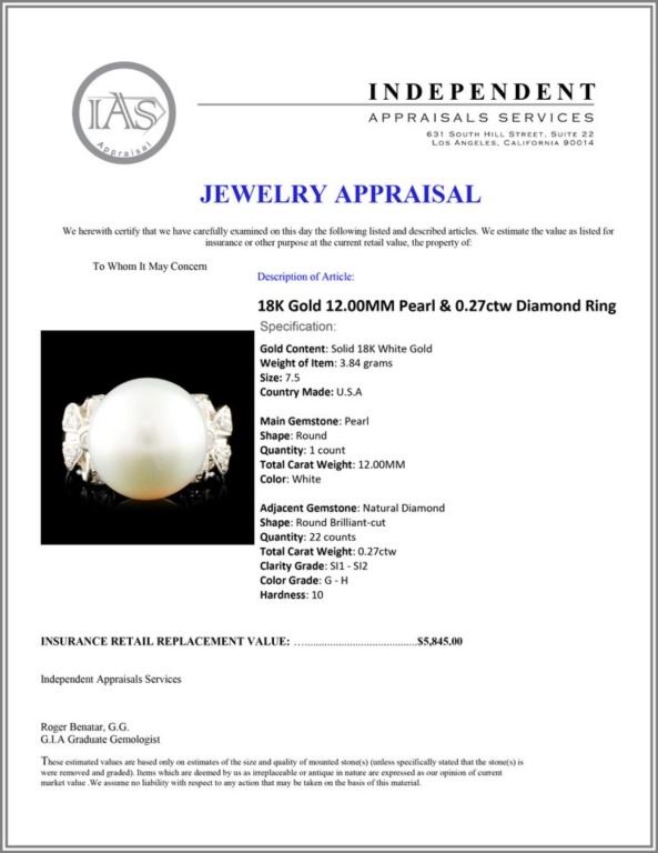 Regarding Appraised Jewelry and Loose Stones - Auctionfarm sends them out to a third party for Retail Replacement Value Appraisals, which are the most common. These types of evaluations are written for insurance needs. This would be the cost to replace the jewelry with an item of equal quality and kind, considered to be the current market price or the replacement value. This type of appraisal is done to protect you in the event of damage or loss of a valuable item. Our appraisals are conducted by independent 3rd Party appraisal firms that utilizes Certified GIA Gemologist. Appraisals should be used for verification of gemstone and/or metal weight, size, and grade only, not actual value. Appraisal value should be considered for insurance purposes only, not actual value, as price varies greatly from retail locations thru out the world. Items should not be purchased with the expectation to resell for appraisal price, or for profit.