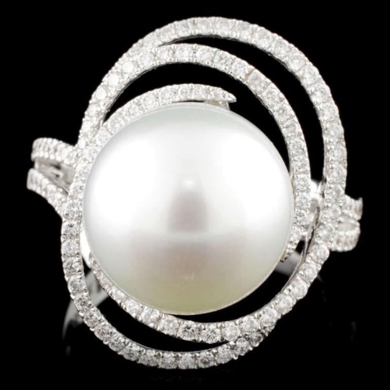 Estimated Retail Replacement Value: $11,268.00Ref: WAG4480Item no.: ARA7026 - BR5067APRLSpecification:Gold Content: Solid 18K White Gold Weight of Item: 7.30 gramsSize: 7Country Made: U.S.A Main Gemstone: South Sea PearlShape: Round-shapeQuantity: 1 countMeasurement: 12 mmColor: SilverSurface Grade: ExcellentLuster: ExcellentAdjacent Gemstone: Natural Diamond Shape: Round Brilliant-cut Total Carat Weight: 0.53ctwClarity Grade: VS2 - SI3Color Grade: F – G Hardness: 10 Great Condition - Shipping notes: We ship 4-10 Business day after the clearance of payment. Tracking numbers are emailed once the package(s) are shipped. Most shipments are sent by FEDEX Priority, UPS Priority, or US PRIORITY MAIL INSURED