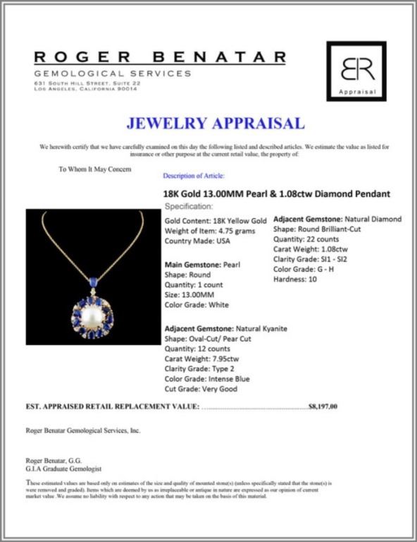 Regarding Appraised Jewelry and Loose Stones - Auctionfarm sends them out to a third party for Retail Replacement Value Appraisals, which are the most common. These types of evaluations are written for insurance needs. This would be the cost to replace the jewelry with an item of equal quality and kind, considered to be the current market price or the replacement value. This type of appraisal is done to protect you in the event of damage or loss of a valuable item. Our appraisals are conducted by independent 3rd Party appraisal firms that utilizes Certified GIA Gemologist. Appraisals should be used for verification of gemstone and/or metal weight, size, and grade only, not actual value. Appraisal value should be considered for insurance purposes only, not actual value, as price varies greatly from retail locations thru out the world. Items should not be purchased with the expectation to resell for appraisal price, or for profit.