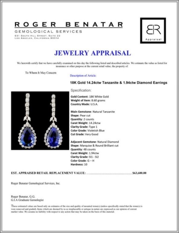 Regarding Appraised Jewelry and Loose Stones - Auctionfarm sends them out to a third party for Retail Replacement Value Appraisals, which are the most common. These types of evaluations are written for insurance needs. This would be the cost to replace the jewelry with an item of equal quality and kind, considered to be the current market price or the replacement value. This type of appraisal is done to protect you in the event of damage or loss of a valuable item. Our appraisals are conducted by independent 3rd Party appraisal firms that utilizes Certified GIA Gemologist. Appraisals should be used for verification of gemstone and/or metal weight, size, and grade only, not actual value. Appraisal value should be considered for insurance purposes only, not actual value, as price varies greatly from retail locations thru out the world. Items should not be purchased with the expectation to resell for appraisal price, or for profit.