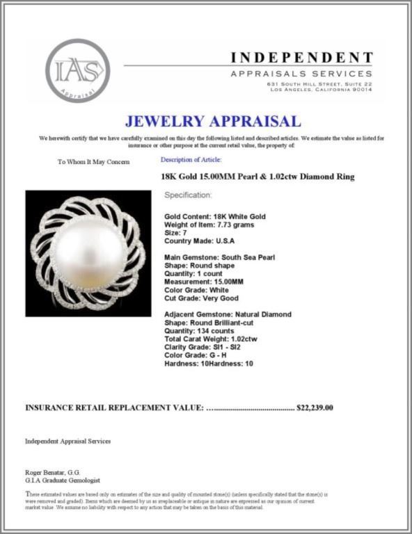 Regarding Appraised Jewelry and Loose Stones - Auctionfarm sends them out to a third party for Retail Replacement Value Appraisals, which are the most common. These types of evaluations are written for insurance needs. This would be the cost to replace the jewelry with an item of equal quality and kind, considered to be the current market price or the replacement value. This type of appraisal is done to protect you in the event of damage or loss of a valuable item. Our appraisals are conducted by independent 3rd Party appraisal firms that utilizes Certified GIA Gemologist. Appraisals should be used for verification of gemstone and/or metal weight, size, and grade only, not actual value. Appraisal value should be considered for insurance purposes only, not actual value, as price varies greatly from retail locations thru out the world. Items should not be purchased with the expectation to resell for appraisal price, or for profit.