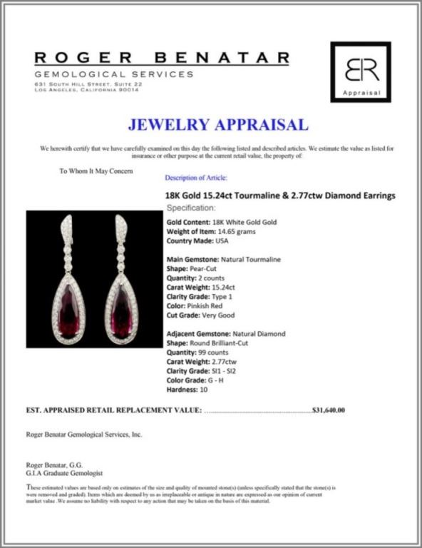 Regarding Appraised Jewelry and Loose Stones - Auctionfarm sends them out to a third party for Retail Replacement Value Appraisals, which are the most common. These types of evaluations are written for insurance needs. This would be the cost to replace the jewelry with an item of equal quality and kind, considered to be the current market price or the replacement value. This type of appraisal is done to protect you in the event of damage or loss of a valuable item. Our appraisals are conducted by independent 3rd Party appraisal firms that utilizes Certified GIA Gemologist. Appraisals should be used for verification of gemstone and/or metal weight, size, and grade only, not actual value. Appraisal value should be considered for insurance purposes only, not actual value, as price varies greatly from retail locations thru out the world. Items should not be purchased with the expectation to resell for appraisal price, or for profit.