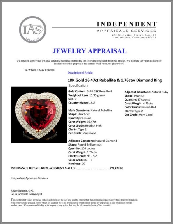 Regarding Appraised Jewelry and Loose Stones - Auctionfarm sends them out to a third party for Retail Replacement Value Appraisals, which are the most common. These types of evaluations are written for insurance needs. This would be the cost to replace the jewelry with an item of equal quality and kind, considered to be the current market price or the replacement value. This type of appraisal is done to protect you in the event of damage or loss of a valuable item. Our appraisals are conducted by independent 3rd Party appraisal firms that utilizes Certified GIA Gemologist. Appraisals should be used for verification of gemstone and/or metal weight, size, and grade only, not actual value. Appraisal value should be considered for insurance purposes only, not actual value, as price varies greatly from retail locations thru out the world. Items should not be purchased with the expectation to resell for appraisal price, or for profit.