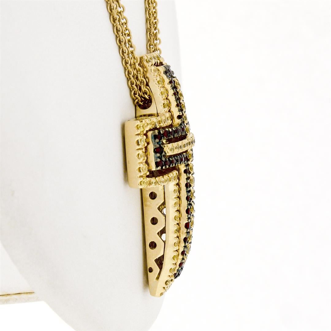 One 18K Gold 2.04ctw Fine Yellow Sapphire & Garnet Large Slide Cross Pendant & Chain. Item Details: Material: 18k Solid Yellow Gold, Weight: 21.38 Grams, Stone(s): (89) Natural Genuine Sapphire - Round Brilliant Cut - Prong Set - Vivid Yellow Color - 1.36ctw (approx.) (TOP QUALITY STONES!), (56) Natural Genuine Garnets - Round Brilliant Cut - Prong Set - Wine Red Color - 0.68ctw (approx.), Chain Type: Fine Multi Strand Cable Link Chain, Chain Length: 16 Inches, Clasp: Lobster Claw Clasp, Width: 27.20mm (1.07"). Height: 35.4mm (1.39"). Thickness: 7.0mm. Condition: Estate piece. Excellent condition and ready to wear.