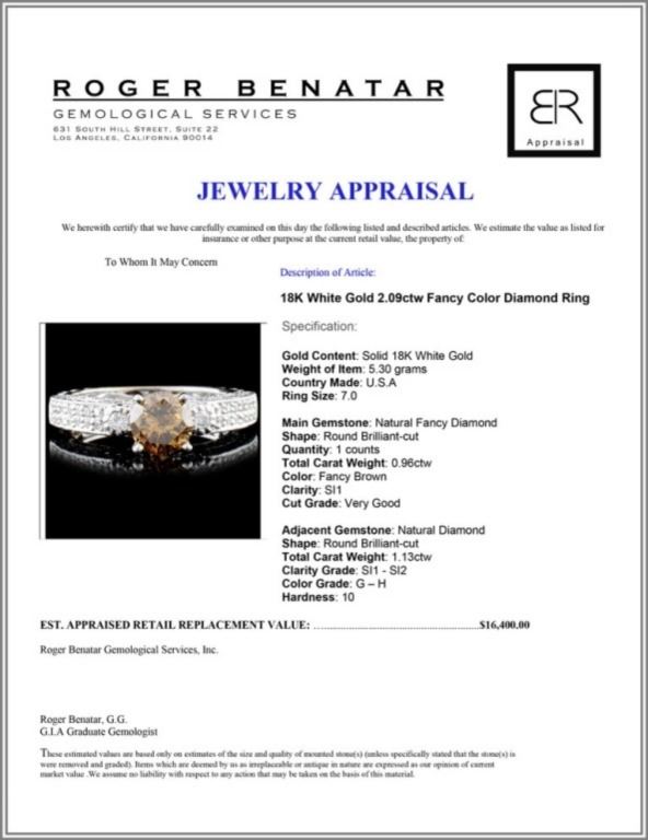 Regarding Appraised Jewelry and Loose Stones - Auctionfarm sends them out to a third party for Retail Replacement Value Appraisals, which are the most common. These types of evaluations are written for insurance needs. This would be the cost to replace the jewelry with an item of equal quality and kind, considered to be the current market price or the replacement value. This type of appraisal is done to protect you in the event of damage or loss of a valuable item. Our appraisals are conducted by independent 3rd Party appraisal firms that utilizes Certified GIA Gemologist. Appraisals should be used for verification of gemstone and/or metal weight, size, and grade only, not actual value. Appraisal value should be considered for insurance purposes only, not actual value, as price varies greatly from retail locations thru out the world. Items should not be purchased with the expectation to resell for appraisal price, or for profit.