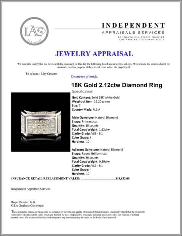 Regarding Appraised Jewelry and Loose Stones - Auctionfarm sends them out to a third party for Retail Replacement Value Appraisals, which are the most common. These types of evaluations are written for insurance needs. This would be the cost to replace the jewelry with an item of equal quality and kind, considered to be the current market price or the replacement value. This type of appraisal is done to protect you in the event of damage or loss of a valuable item. Our appraisals are conducted by independent 3rd Party appraisal firms that utilizes Certified GIA Gemologist. Appraisals should be used for verification of gemstone and/or metal weight, size, and grade only, not actual value. Appraisal value should be considered for insurance purposes only, not actual value, as price varies greatly from retail locations thru out the world. Items should not be purchased with the expectation to resell for appraisal price, or for profit.