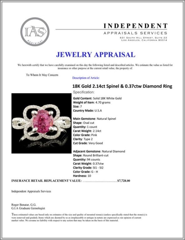 Regarding Appraised Jewelry and Loose Stones - Auctionfarm sends them out to a third party for Retail Replacement Value Appraisals, which are the most common. These types of evaluations are written for insurance needs. This would be the cost to replace the jewelry with an item of equal quality and kind, considered to be the current market price or the replacement value. This type of appraisal is done to protect you in the event of damage or loss of a valuable item. Our appraisals are conducted by independent 3rd Party appraisal firms that utilizes Certified GIA Gemologist. Appraisals should be used for verification of gemstone and/or metal weight, size, and grade only, not actual value. Appraisal value should be considered for insurance purposes only, not actual value, as price varies greatly from retail locations thru out the world. Items should not be purchased with the expectation to resell for appraisal price, or for profit.