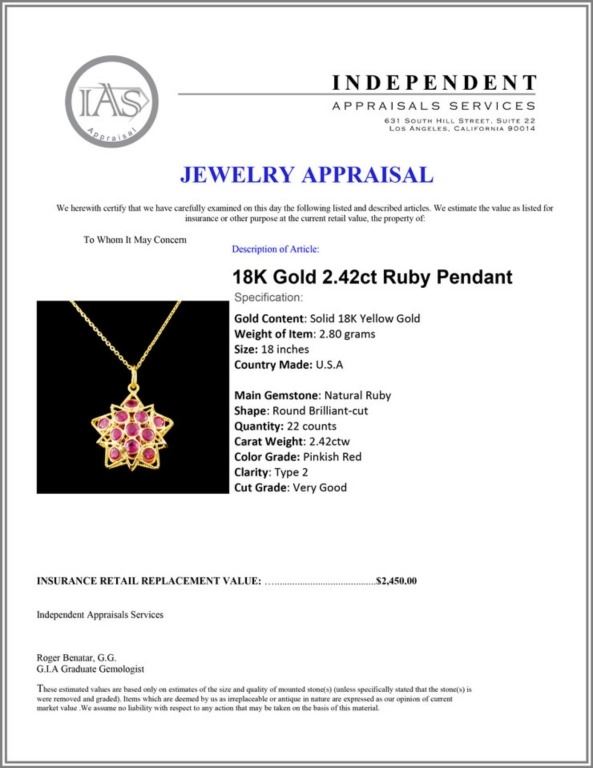 Regarding Appraised Jewelry and Loose Stones - Auctionfarm sends them out to a third party for Retail Replacement Value Appraisals, which are the most common. These types of evaluations are written for insurance needs. This would be the cost to replace the jewelry with an item of equal quality and kind, considered to be the current market price or the replacement value. This type of appraisal is done to protect you in the event of damage or loss of a valuable item. Our appraisals are conducted by independent 3rd Party appraisal firms that utilizes Certified GIA Gemologist. Appraisals should be used for verification of gemstone and/or metal weight, size, and grade only, not actual value. Appraisal value should be considered for insurance purposes only, not actual value, as price varies greatly from retail locations thru out the world. Items should not be purchased with the expectation to resell for appraisal price, or for profit.
