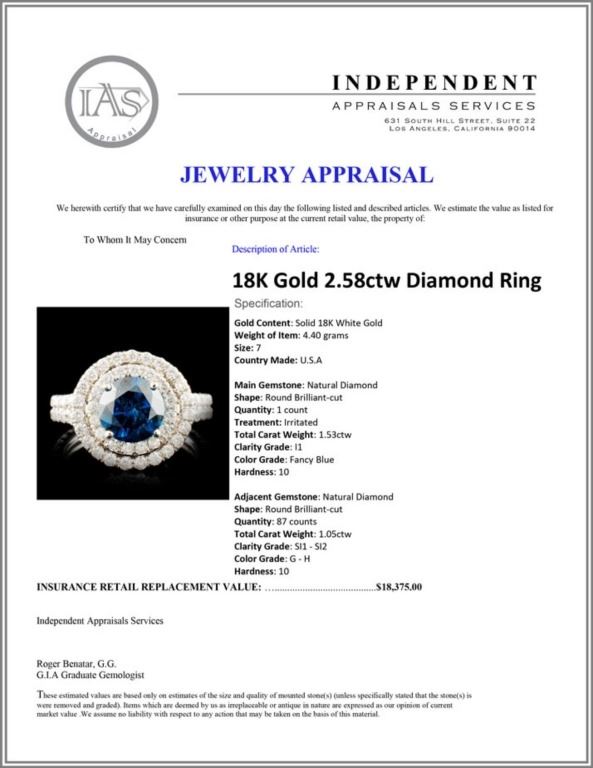 Regarding Appraised Jewelry and Loose Stones - Auctionfarm sends them out to a third party for Retail Replacement Value Appraisals, which are the most common. These types of evaluations are written for insurance needs. This would be the cost to replace the jewelry with an item of equal quality and kind, considered to be the current market price or the replacement value. This type of appraisal is done to protect you in the event of damage or loss of a valuable item. Our appraisals are conducted by independent 3rd Party appraisal firms that utilizes Certified GIA Gemologist. Appraisals should be used for verification of gemstone and/or metal weight, size, and grade only, not actual value. Appraisal value should be considered for insurance purposes only, not actual value, as price varies greatly from retail locations thru out the world. Items should not be purchased with the expectation to resell for appraisal price, or for profit.