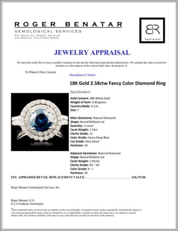 Regarding Appraised Jewelry and Loose Stones - Auctionfarm sends them out to a third party for Retail Replacement Value Appraisals, which are the most common. These types of evaluations are written for insurance needs. This would be the cost to replace the jewelry with an item of equal quality and kind, considered to be the current market price or the replacement value. This type of appraisal is done to protect you in the event of damage or loss of a valuable item. Our appraisals are conducted by independent 3rd Party appraisal firms that utilizes Certified GIA Gemologist. Appraisals should be used for verification of gemstone and/or metal weight, size, and grade only, not actual value. Appraisal value should be considered for insurance purposes only, not actual value, as price varies greatly from retail locations thru out the world. Items should not be purchased with the expectation to resell for appraisal price, or for profit.