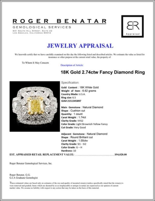 Regarding Appraised Jewelry and Loose Stones - Auctionfarm sends them out to a third party for Retail Replacement Value Appraisals, which are the most common. These types of evaluations are written for insurance needs. This would be the cost to replace the jewelry with an item of equal quality and kind, considered to be the current market price or the replacement value. This type of appraisal is done to protect you in the event of damage or loss of a valuable item. Our appraisals are conducted by independent 3rd Party appraisal firms that utilizes Certified GIA Gemologist. Appraisals should be used for verification of gemstone and/or metal weight, size, and grade only, not actual value. Appraisal value should be considered for insurance purposes only, not actual value, as price varies greatly from retail locations thru out the world. Items should not be purchased with the expectation to resell for appraisal price, or for profit.