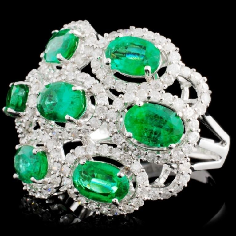 Estimated Retail Replacement Value: $10,140.00Ref: WAG4800Item no.: ARA7019Specification:Gold Content: Solid 18K White Gold Weight of Item: 6.90 gramsSize: 7.75Country Made: U.S.A Main Gemstone: Natural Emerald Shape: Oval-shapeQuantity: 7 countTotal Carat Weight: 2.80ctColor: GreenClarity: Type 2 Cut Grade: Very Good Adjacent Gemstone: Natural Diamond Shape: Round Brilliant-cut Quantity: 146 countsTotal Carat Weight: 1.07ctwClarity Grade: SI2 - I1Color Grade: H – I Hardness: 10 Great Condition - Shipping notes: We ship 4-10 Business day after the clearance of payment. Tracking numbers are emailed once the package(s) are shipped. Most shipments are sent by FEDEX Priority, UPS Priority, or US PRIORITY MAIL INSURED