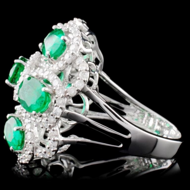 Estimated Retail Replacement Value: $10,140.00Ref: WAG4800Item no.: ARA7019Specification:Gold Content: Solid 18K White Gold Weight of Item: 6.90 gramsSize: 7.75Country Made: U.S.A Main Gemstone: Natural Emerald Shape: Oval-shapeQuantity: 7 countTotal Carat Weight: 2.80ctColor: GreenClarity: Type 2 Cut Grade: Very Good Adjacent Gemstone: Natural Diamond Shape: Round Brilliant-cut Quantity: 146 countsTotal Carat Weight: 1.07ctwClarity Grade: SI2 - I1Color Grade: H – I Hardness: 10 Great Condition - Shipping notes: We ship 4-10 Business day after the clearance of payment. Tracking numbers are emailed once the package(s) are shipped. Most shipments are sent by FEDEX Priority, UPS Priority, or US PRIORITY MAIL INSURED