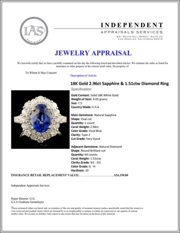 Regarding Appraised Jewelry and Loose Stones - Auctionfarm sends them out to a third party for Retail Replacement Value Appraisals, which are the most common. These types of evaluations are written for insurance needs. This would be the cost to replace the jewelry with an item of equal quality and kind, considered to be the current market price or the replacement value. This type of appraisal is done to protect you in the event of damage or loss of a valuable item. Our appraisals are conducted by independent 3rd Party appraisal firms that utilizes Certified GIA Gemologist. Appraisals should be used for verification of gemstone and/or metal weight, size, and grade only, not actual value. Appraisal value should be considered for insurance purposes only, not actual value, as price varies greatly from retail locations thru out the world. Items should not be purchased with the expectation to resell for appraisal price, or for profit.