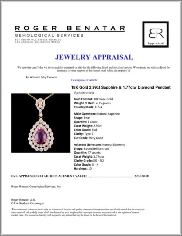 Regarding Appraised Jewelry and Loose Stones - Auctionfarm sends them out to a third party for Retail Replacement Value Appraisals, which are the most common. These types of evaluations are written for insurance needs. This would be the cost to replace the jewelry with an item of equal quality and kind, considered to be the current market price or the replacement value. This type of appraisal is done to protect you in the event of damage or loss of a valuable item. Our appraisals are conducted by independent 3rd Party appraisal firms that utilizes Certified GIA Gemologist. Appraisals should be used for verification of gemstone and/or metal weight, size, and grade only, not actual value. Appraisal value should be considered for insurance purposes only, not actual value, as price varies greatly from retail locations thru out the world. Items should not be purchased with the expectation to resell for appraisal price, or for profit.