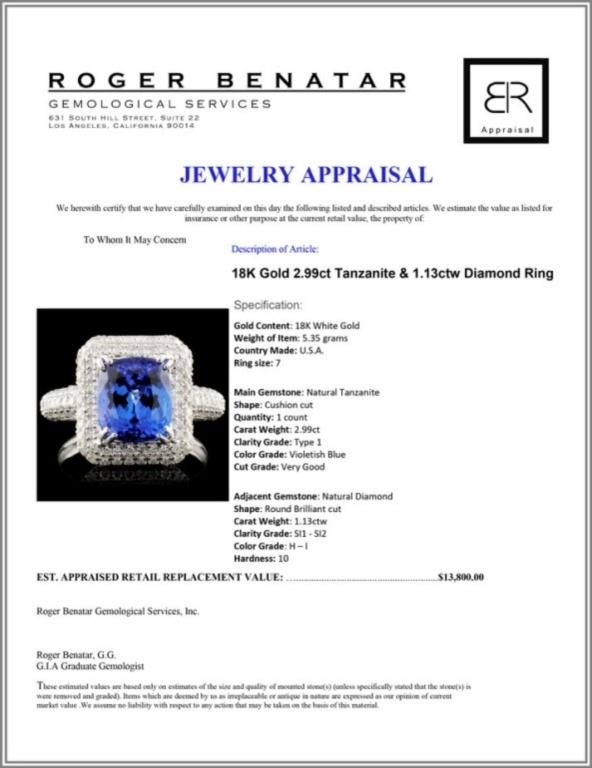 Regarding Appraised Jewelry and Loose Stones - Auctionfarm sends them out to a third party for Retail Replacement Value Appraisals, which are the most common. These types of evaluations are written for insurance needs. This would be the cost to replace the jewelry with an item of equal quality and kind, considered to be the current market price or the replacement value. This type of appraisal is done to protect you in the event of damage or loss of a valuable item. Our appraisals are conducted by independent 3rd Party appraisal firms that utilizes Certified GIA Gemologist. Appraisals should be used for verification of gemstone and/or metal weight, size, and grade only, not actual value. Appraisal value should be considered for insurance purposes only, not actual value, as price varies greatly from retail locations thru out the world. Items should not be purchased with the expectation to resell for appraisal price, or for profit.