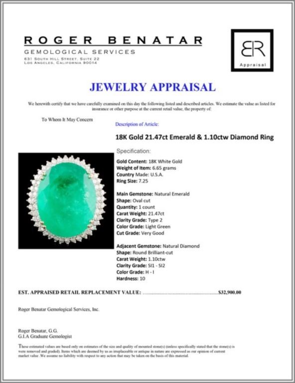 Regarding Appraised Jewelry and Loose Stones - Auctionfarm sends them out to a third party for Retail Replacement Value Appraisals, which are the most common. These types of evaluations are written for insurance needs. This would be the cost to replace the jewelry with an item of equal quality and kind, considered to be the current market price or the replacement value. This type of appraisal is done to protect you in the event of damage or loss of a valuable item. Our appraisals are conducted by independent 3rd Party appraisal firms that utilizes Certified GIA Gemologist. Appraisals should be used for verification of gemstone and/or metal weight, size, and grade only, not actual value. Appraisal value should be considered for insurance purposes only, not actual value, as price varies greatly from retail locations thru out the world. Items should not be purchased with the expectation to resell for appraisal price, or for profit.