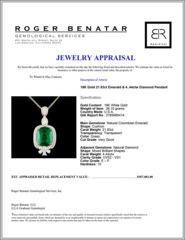 Regarding Appraised Jewelry and Loose Stones - Auctionfarm sends them out to a third party for Retail Replacement Value Appraisals, which are the most common. These types of evaluations are written for insurance needs. This would be the cost to replace the jewelry with an item of equal quality and kind, considered to be the current market price or the replacement value. This type of appraisal is done to protect you in the event of damage or loss of a valuable item. Our appraisals are conducted by independent 3rd Party appraisal firms that utilizes Certified GIA Gemologist. Appraisals should be used for verification of gemstone and/or metal weight, size, and grade only, not actual value. Appraisal value should be considered for insurance purposes only, not actual value, as price varies greatly from retail locations thru out the world. Items should not be purchased with the expectation to resell for appraisal price, or for profit.