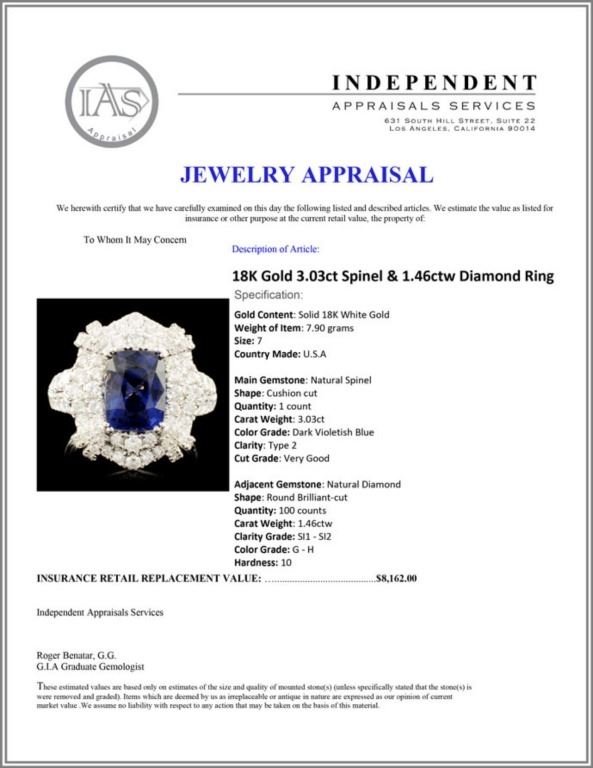 Regarding Appraised Jewelry and Loose Stones - Auctionfarm sends them out to a third party for Retail Replacement Value Appraisals, which are the most common. These types of evaluations are written for insurance needs. This would be the cost to replace the jewelry with an item of equal quality and kind, considered to be the current market price or the replacement value. This type of appraisal is done to protect you in the event of damage or loss of a valuable item. Our appraisals are conducted by independent 3rd Party appraisal firms that utilizes Certified GIA Gemologist. Appraisals should be used for verification of gemstone and/or metal weight, size, and grade only, not actual value. Appraisal value should be considered for insurance purposes only, not actual value, as price varies greatly from retail locations thru out the world. Items should not be purchased with the expectation to resell for appraisal price, or for profit.